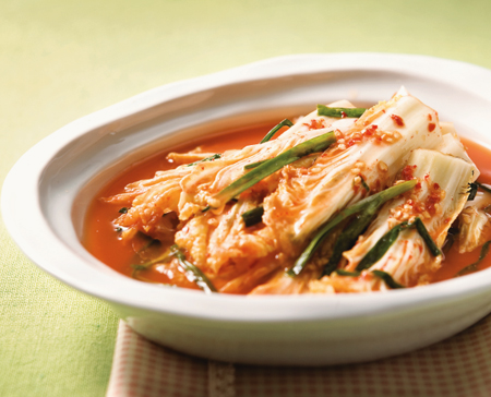 3 볼에 분량의 생수와 소금을 섞어 간한 뒤 ②의 알배추에 붓고 이틀 정도 차가운 곳에서 통풍이 잘되도록 새콤하게 익혀 먹는다.