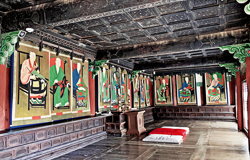 송광사는 고려시대 16국사를 배출하며 승보종찰의 면모를 자랑한다. 사진은 16국사 진영 모사본이 봉안된 국사전 내부.