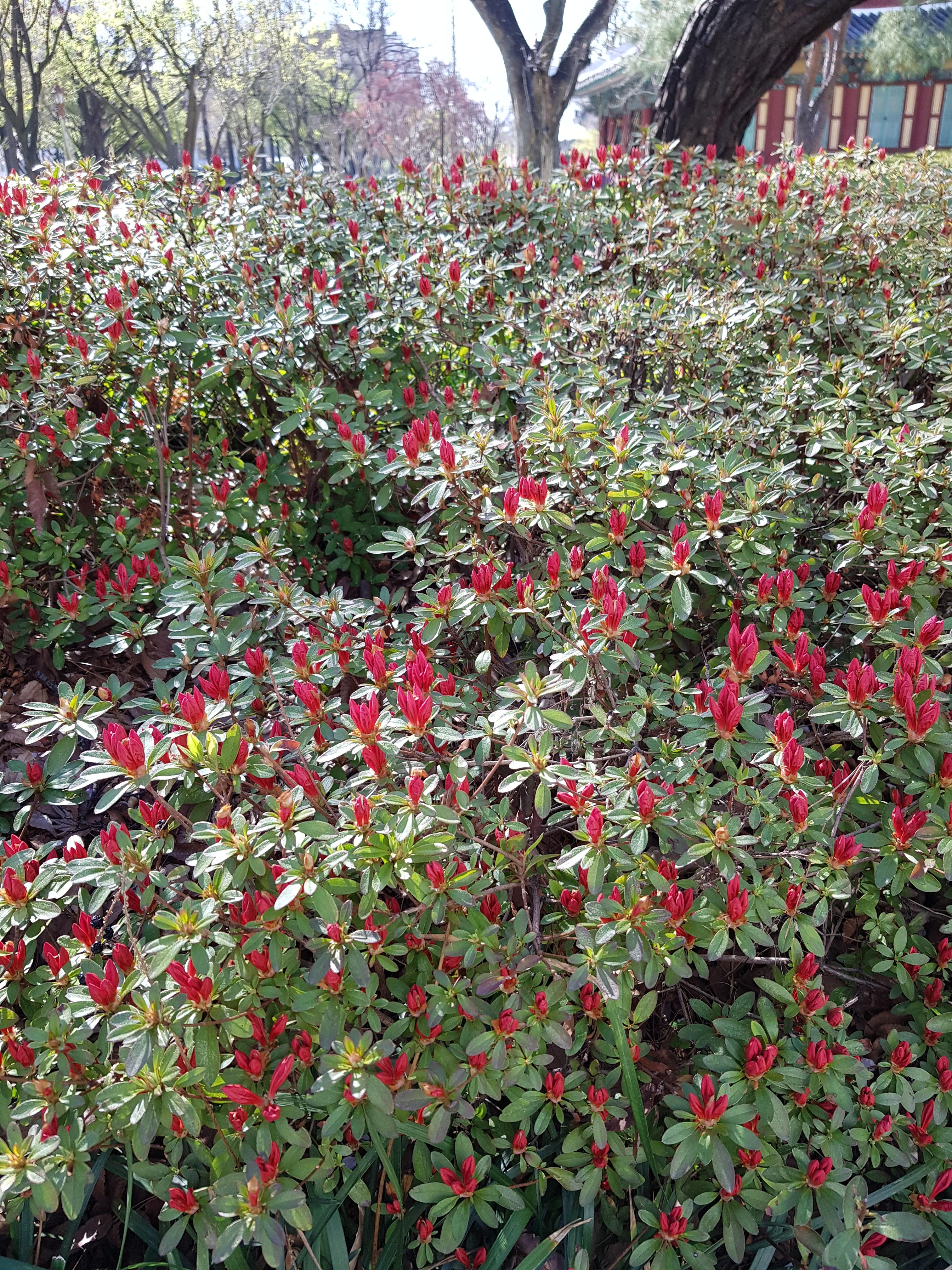 경상감영공원 벚꽃은 감영 뒤쪽 정원 가 산책로에 줄지어 서있다