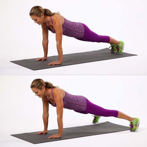 1. 플랭크 자세에서 시작하며, 두 다리를 모아줍니다.