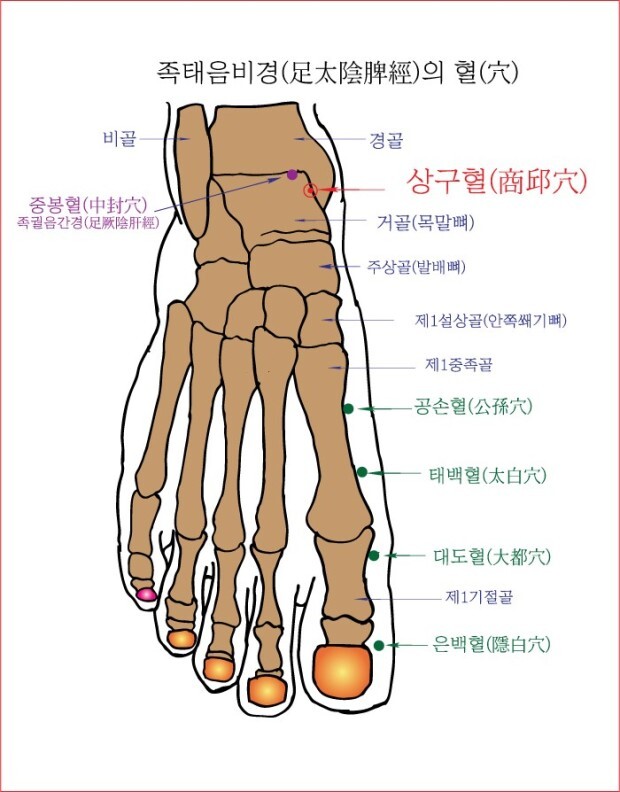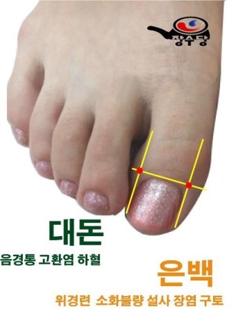 대맥의 통혈이기도 해서 대맥의 순환을 촉진하여 수곡의 대사물을 아래쪽으로 하강시키는 육부의 순행을 도와줌.