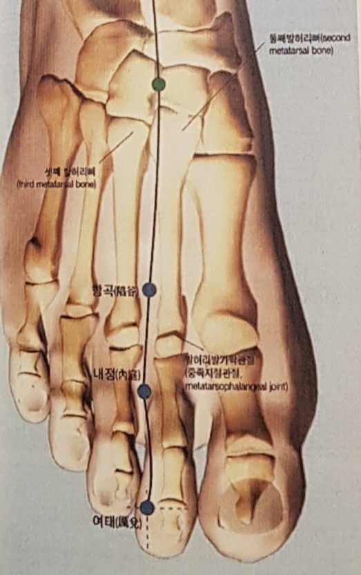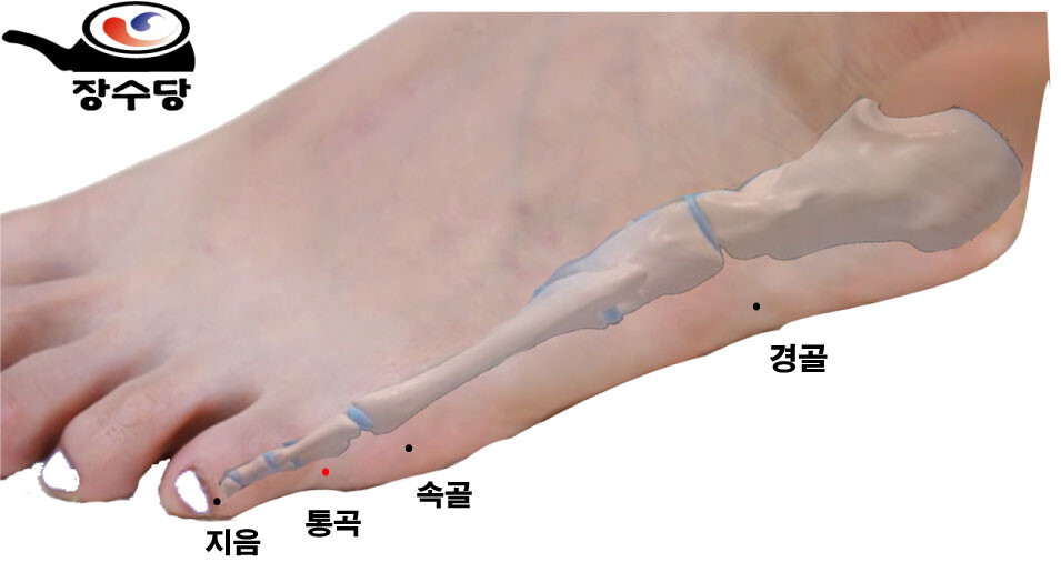 진오행혈로서 다른 육부의 목혈과 배오하여 육부의 운동을 추동하며 경락,경근을 소통시킴.