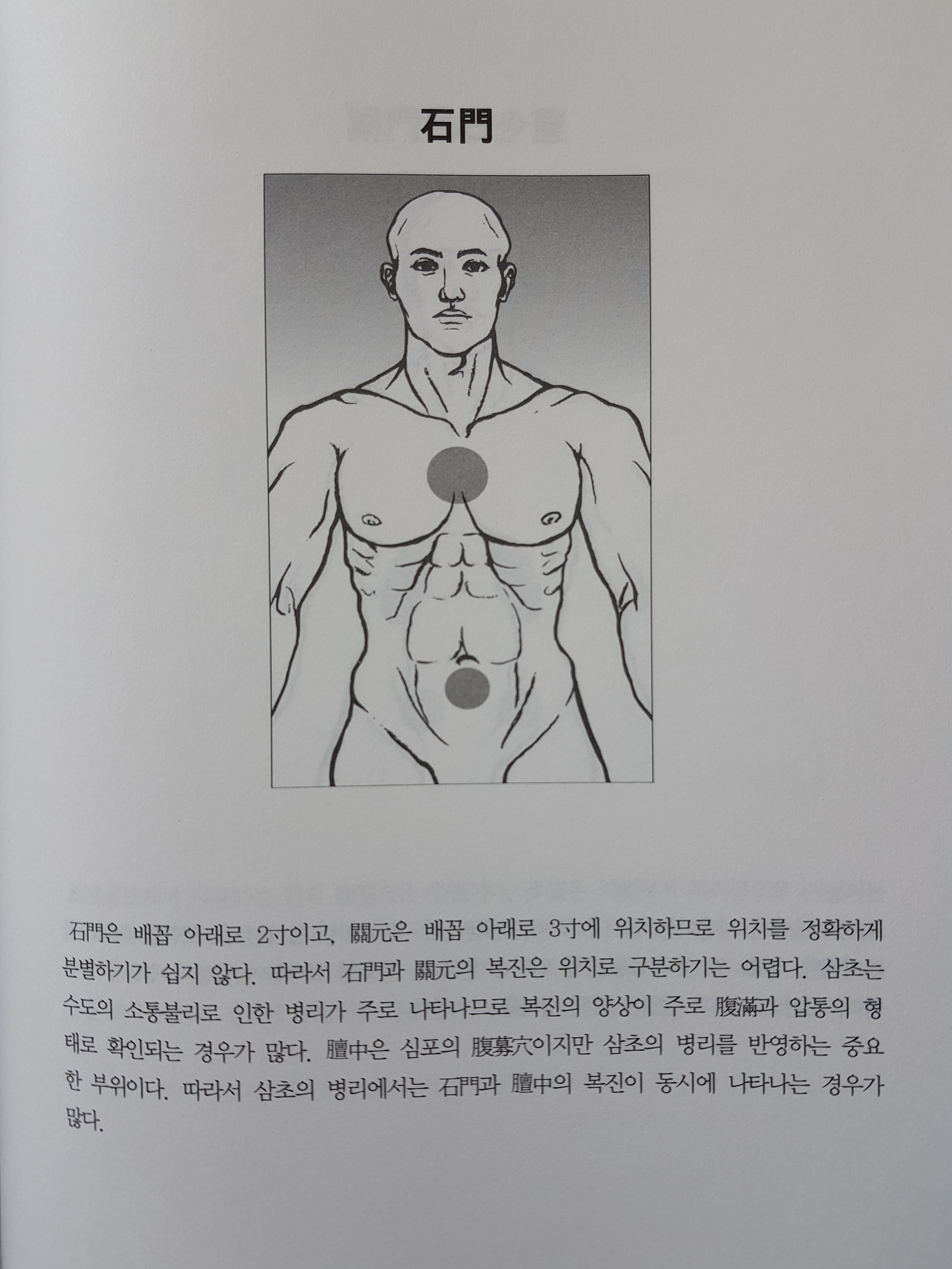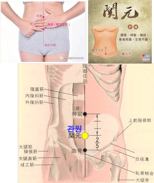 관원은 배꼽 아래로 3촌이고 석문은 배꼽 아래로 2촌에 위치하므로 위치를 정확하게 분별하기가 쉽지않다