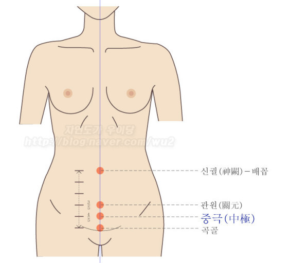 중완은 명치 아래의 겸상돌기와 배꼽 사이의 정중앙을 기준으로 잡는다
